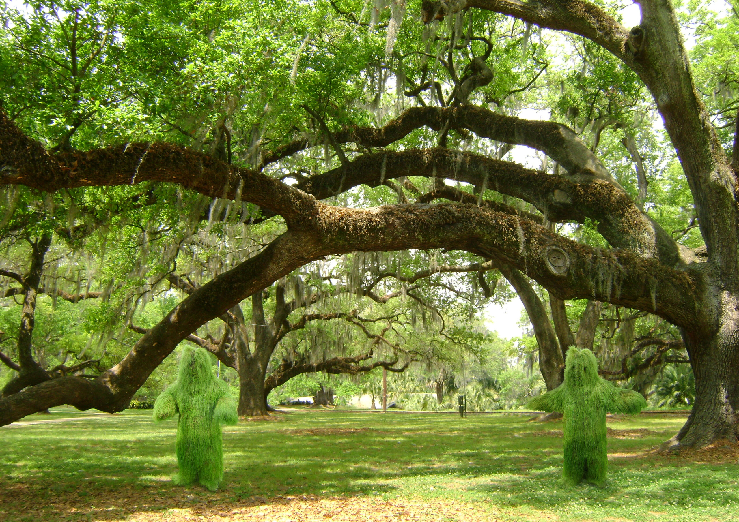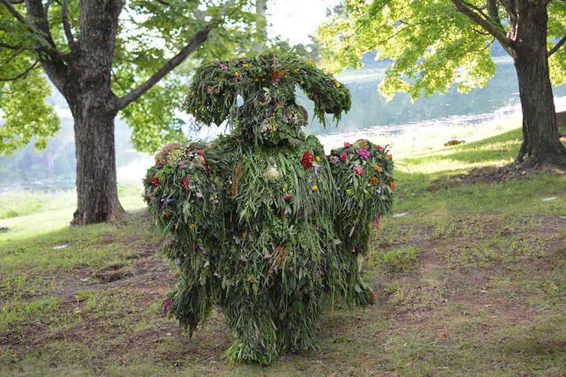 Ashley Peevor’s Grass Men – costumes made from living grass, exploring the boundary between humans and nature